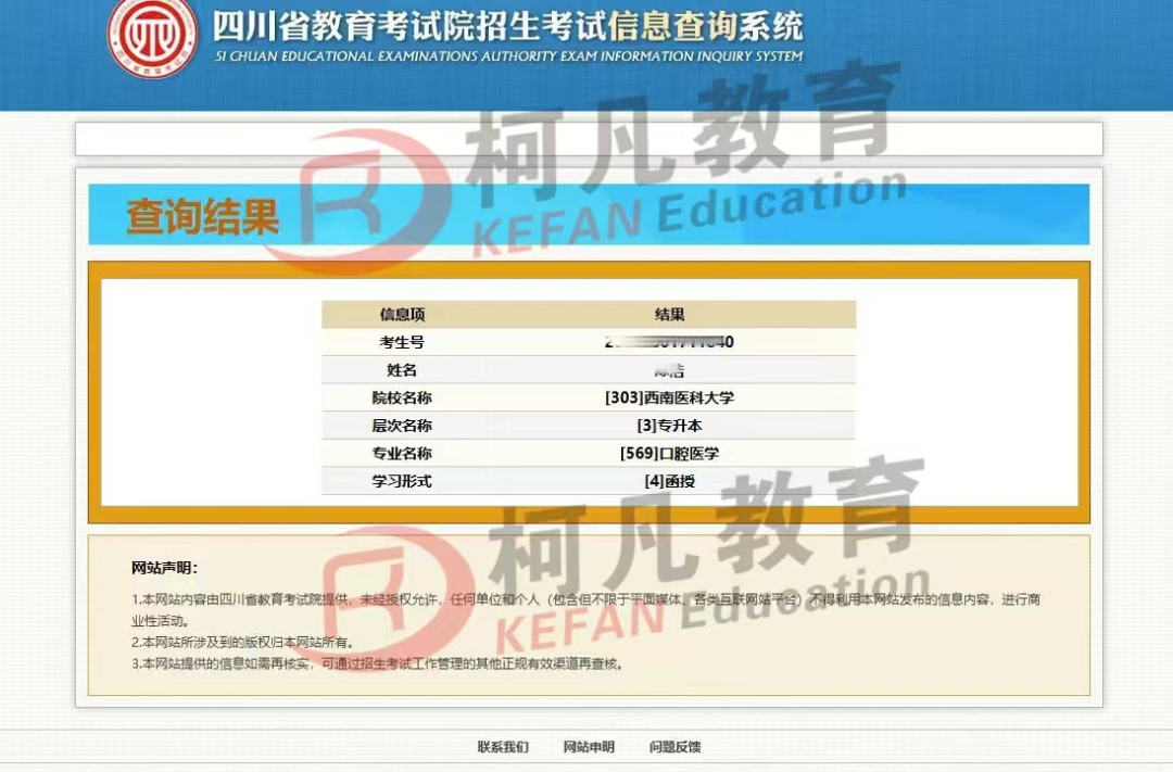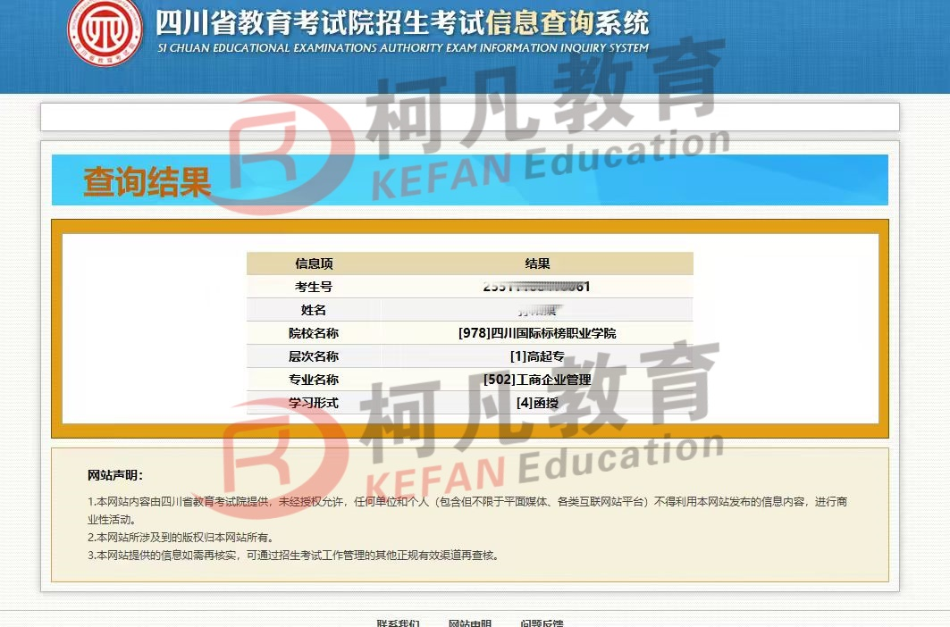 热烈祝贺柯凡学员《四川考区》2025年成人高考录取*再创新高!