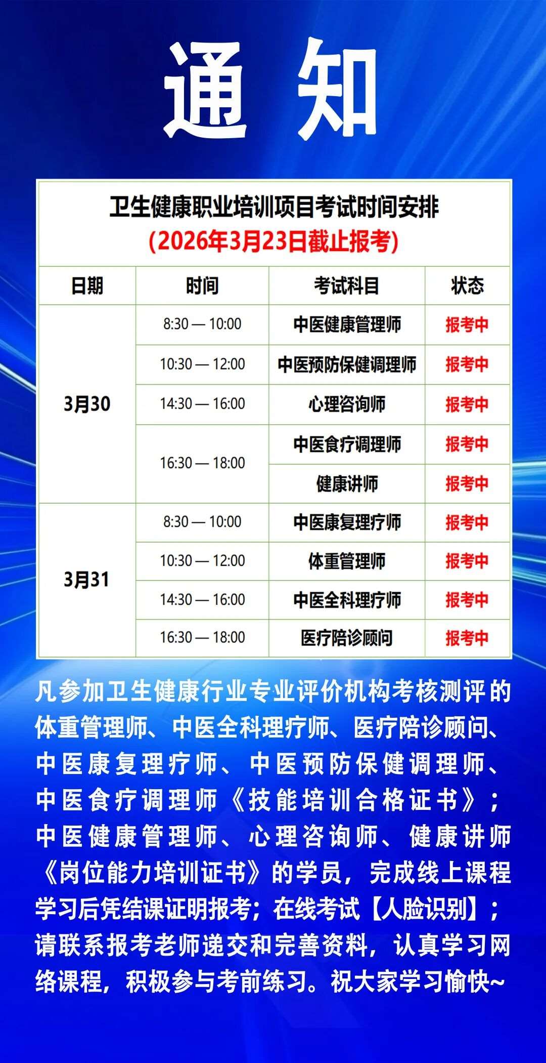 通知:重庆卫健委3月考试计划