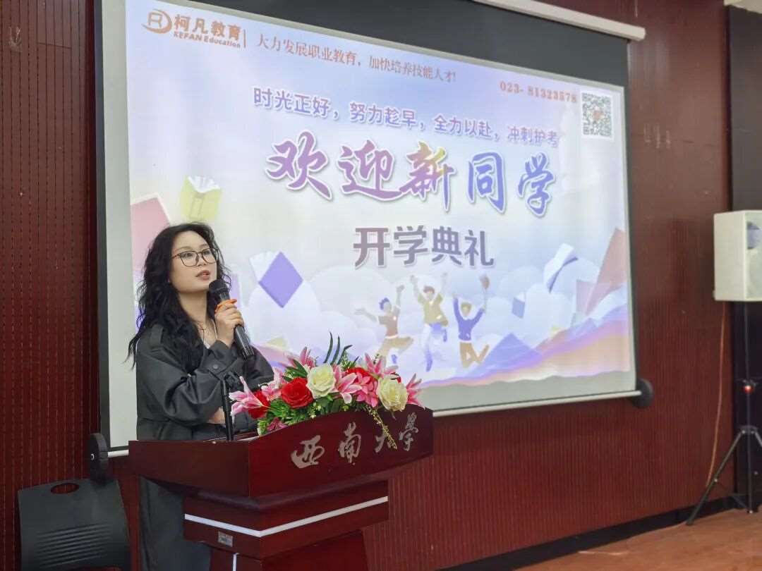 在开班典礼上,学员代表与教师代表依次上台发言,传递着温暖而坚定的力量。